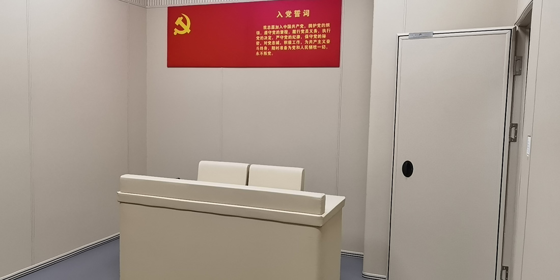 • 紀檢談話室軟包安裝前整體構建…
